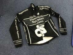 で、今イベントに合わせて揃えようと思ってるサイクル用ジャケット。この写真はサンプルなんですが、注文する前に皆さんサイズ合わせにスタジオに来ています。