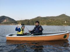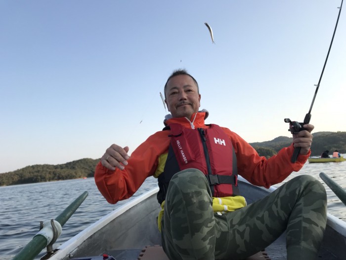 入鹿池にはこんな外道も、これはブルーギル(外来種)です。これらは釣れたら上まで持ち帰って船屋さんに提供です。なんでも猫の餌にするとか…