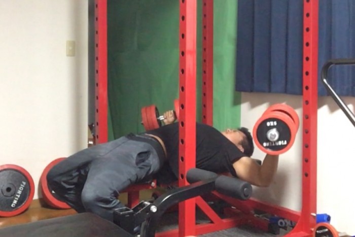 今回は肩に違和感があったため、90kg以上の重量ではトレーニングしませんでした。