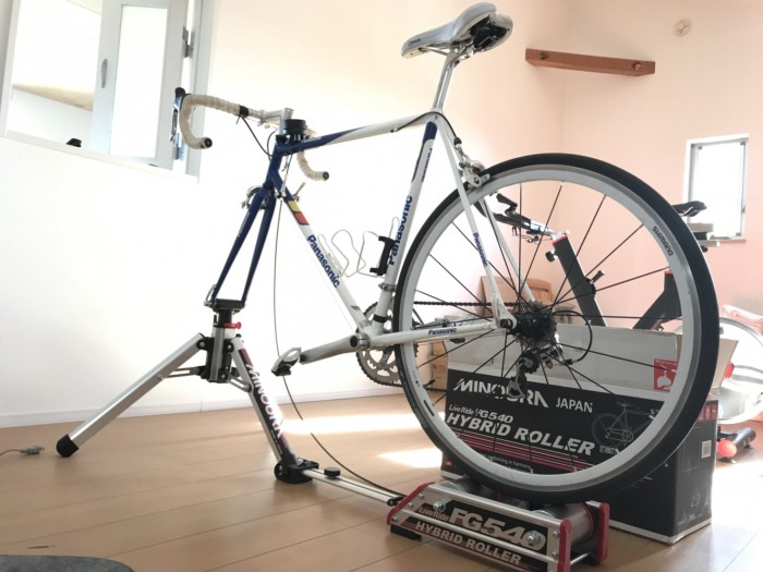 そそ、最近は寒くて外走りを躊躇する事が多くなったので、自宅にハイブリッドローラーを設置しました。