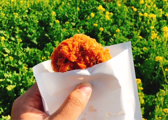 ここに来ると必ず食べるものが「菜の花コロッケ」ですね。