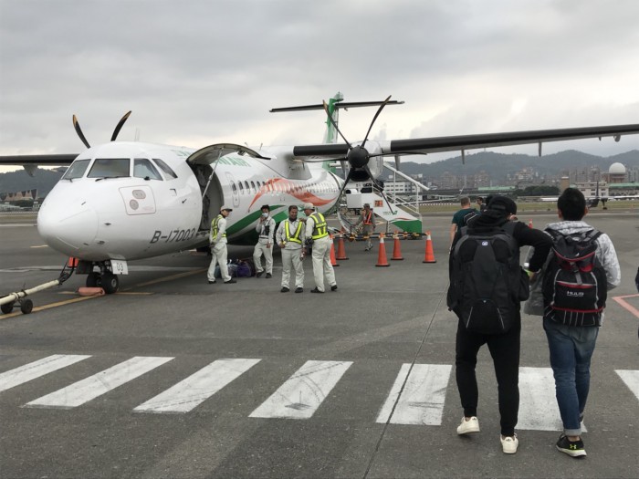 台北に付いたら台東に移動します。ここからプロペラ機移動、プロペラ機に乗るのは初めての経験。飛行中かなり揺れましたね、気候のせいと思いますがちょっと焦りました。