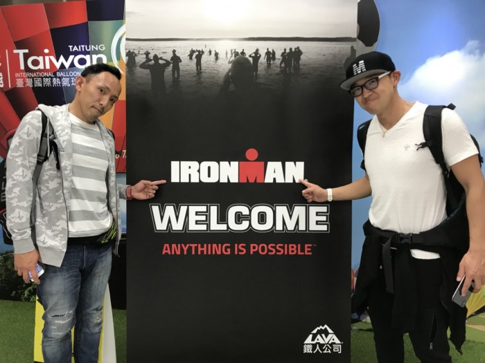 アイアンマン台湾70.3のウェルカムボードの前で写真を1枚。日本から台東まで約10時間の移動でした。もう移動だけで疲れました。