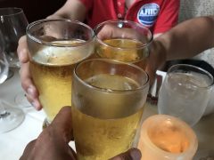 朝が早いのでとにかく早く夕食を取って寝たいんです。の乾杯!