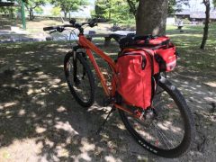 帰りはメンバーのアルコールやツマミを私のMTBのバックに詰込み