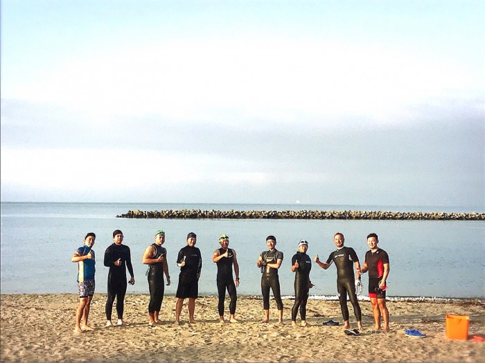 中にはロードバイクで寺部海岸まで来て、泳いで帰った強者もいました。