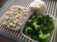 オクラ入りササミ300g、ブロッコリー100g、玄米150g