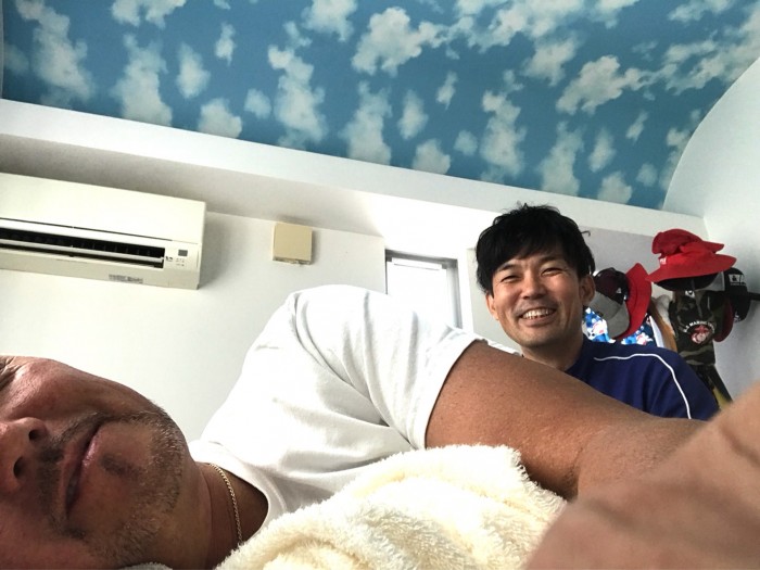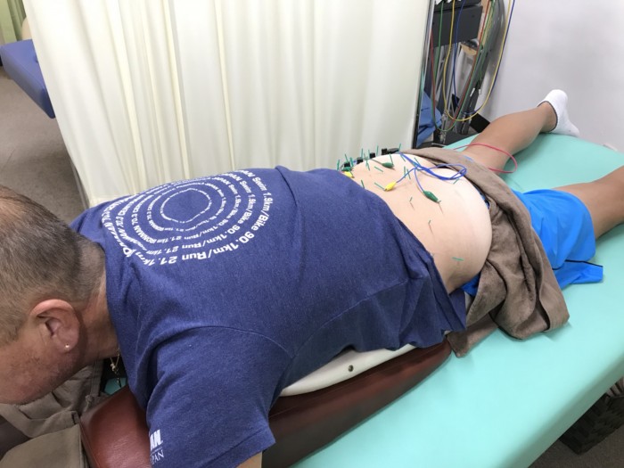 急に立てなくなり腰砕けに、トライスロン仲間でもあるサンテ鍼灸治療院の小松先生にヘルプの電話を、急にも関わらず応急処置をしてもらいました。