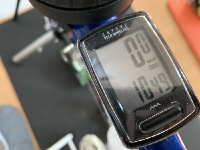 そそ、自宅に設置してあるロードバイク練習用のオドメーターの距離が1000㎞を越えました。