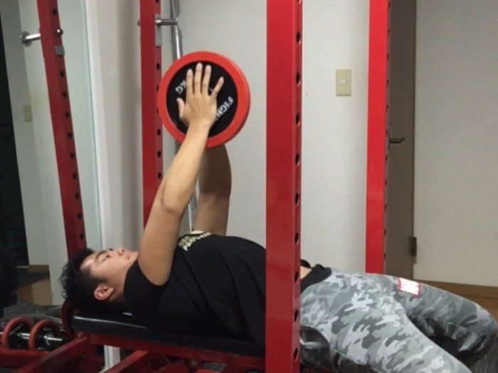 他にもダンベルフライなどのストレッチをかけた種目も取り入れています。