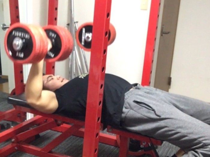 ダンベルプレスも行いました。