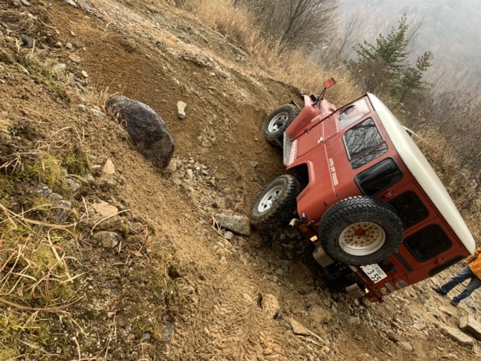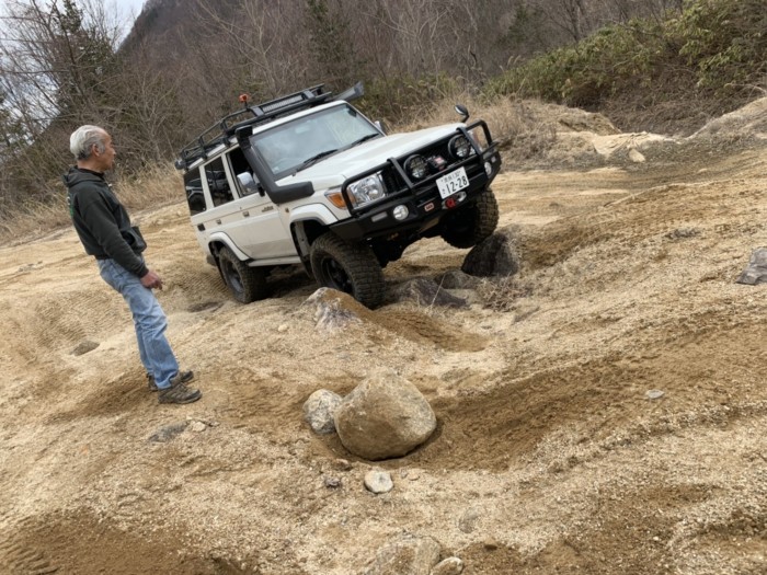 オフロードパークでは、ベテランの方たちが走行のテクニックを教えてくれながら荒れ地を色々とチャレンジします。四駆なら何処でも走れる訳でも無く、この荒地は何処からタイヤを入れていくとかね。