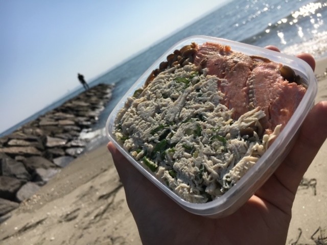 この日はお弁当持参です。減量中なので中身はもちろんオクラ入りササミ。