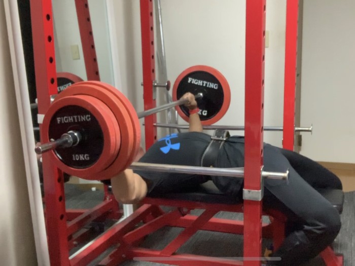 増量期に入ってからBIG3のトレーニングを頑張っています。その中でもベンチプレスは120kgを上げる事が目標にしています。