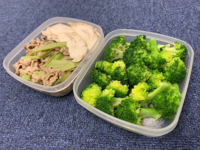 鳥、牛肉約200g、ブロッコリーですね。