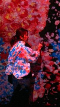この部屋は「花と共に生きる動物達」という作品です。写真の感じは花がメインになってしまいましたが動物は私よりもっと大きく動いていましたよ。