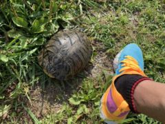 今朝は、走ってると大きな亀と遭遇。これイキなり草むらから現れて驚きましたよ。