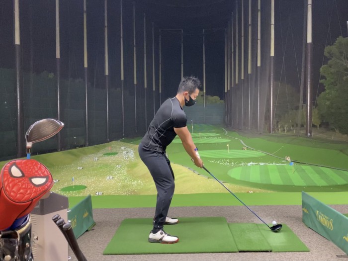 まずはアイアンからやってみましたが、左右に飛んで安定しません…