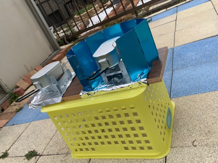 岡本さんに頂いだ道具を使ってみましたが、アルミの防風板のおかげで日が消えずにしっかり炊く事ができました。