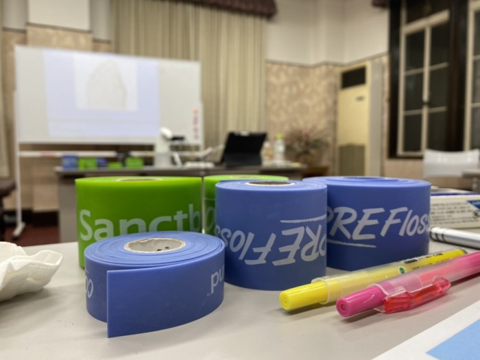 先日は、フロスバンドの講習会に参加して来ました。スタジオ内で脹脛などにゴムのバンドを巻いてる姿を見たことがあるお客様も多いと思います。
