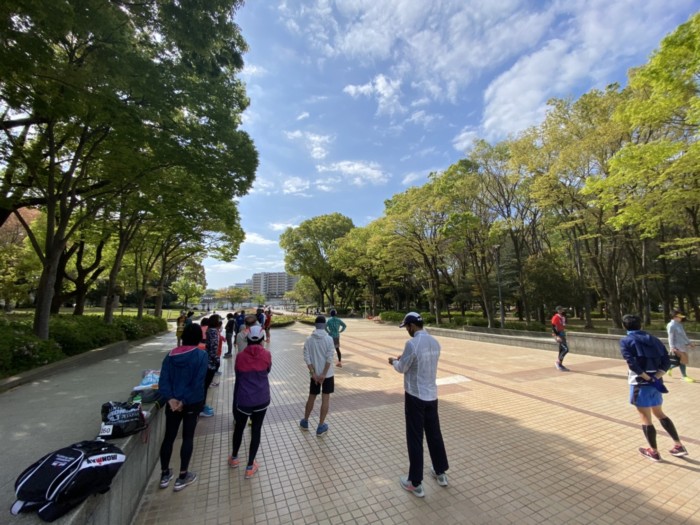 ラニングドリルを2時間かけて公園内で行います。昨年度から地味に通ってますが、通いだしてから膝の痛みが無くなったり、タイムが伸びたりと「やはり基本が大切」