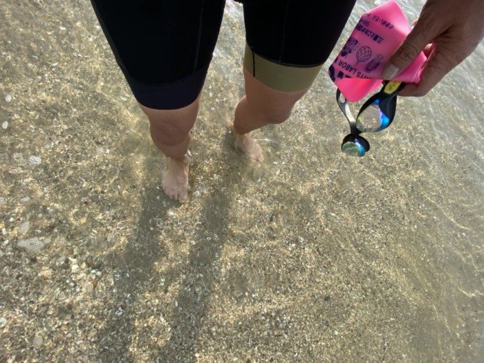 海で泳ぐときは荷物類はこんな感じで並べています。
