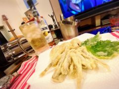 夜は釣り上げた魚を捌いて、天ぷらにして頂きました(美味なり)