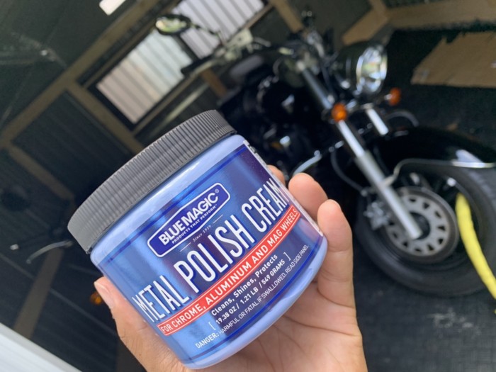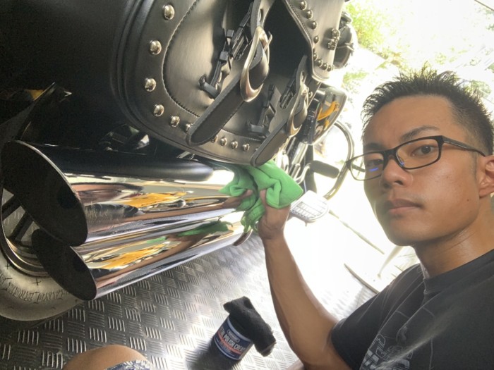 この日はイントルーダーのメッキパーツを磨きました。