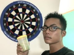 最近はダーツにハマっているのでプロテインを飲みながら投げています。