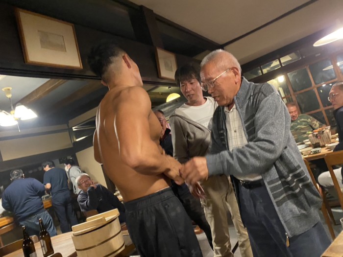 部屋では、年配陣に囲まれてお酒を飲む石田トレーナーの姿をみて、なんか成長したなぁとか思った次第です。