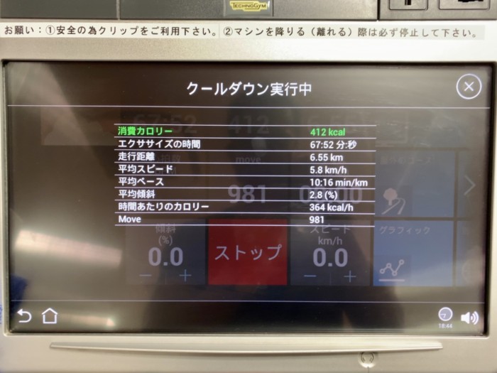 ホリデイランニングマシンで1時間走ってみました。