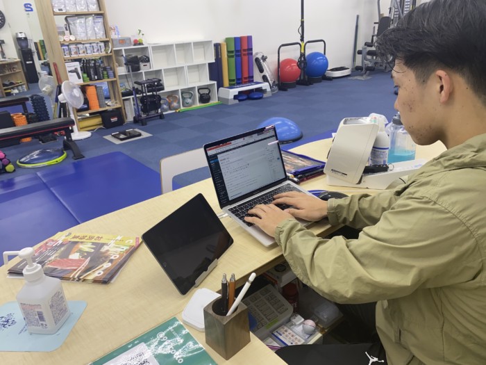 空き時間には事務作業をしたりトレーニングの勉強をしています。