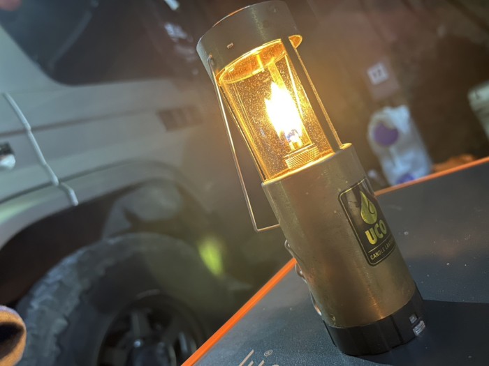 土曜日の仕事終わりからのスタートでしたので、設営したらもう外は薄暗くなりました。夜は涼しくて良い、小さなオイルランタンに明りを灯して雰囲気作り大切です。