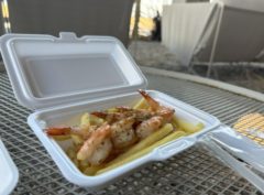 男2人で可愛くパンケーキとガーリックシュリンプポテト