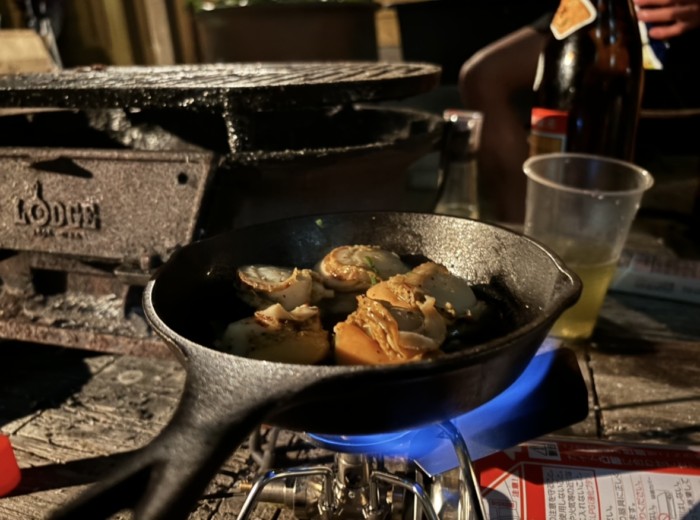 終盤炭が切れてホタテだけ焼けていなくて困っていたら車にキャンプ道具があることを思い出しバーナーとスキレットを取り出し美味しいホタテが食べられました。こういったことがあるのでキャンプ道具は積んでおこうと思いました。