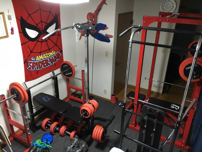 少し前にパワーラック(右)が来たことにより、ベンチプレス、スクワット、デットリフト、チンニングなど全身のトレーニングができるようになりました。