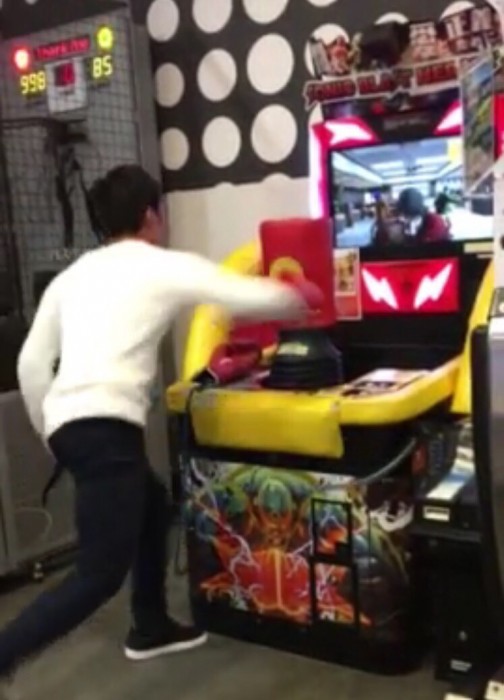 まず、ストレス発散するためにパンチ力を測るゲームをしました。