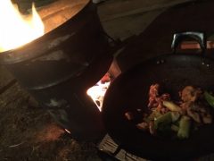 夜中にたき火に肉調理をしてみたり