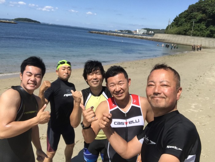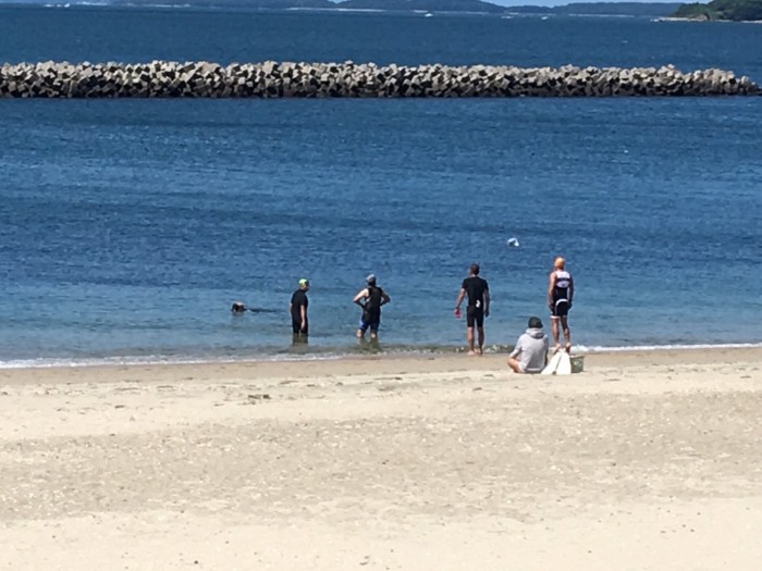 トライアスロンに向けて寺部海岸でスイムの練習をしました。