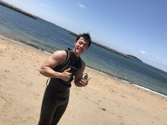 ウェットスーツのおかげで気持ちに余裕が出て、ゆっくりではありましたが無事に泳ぎきる事ができました!