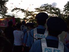 人が多く道が混雑しているため、警察官も忙しそうでした。