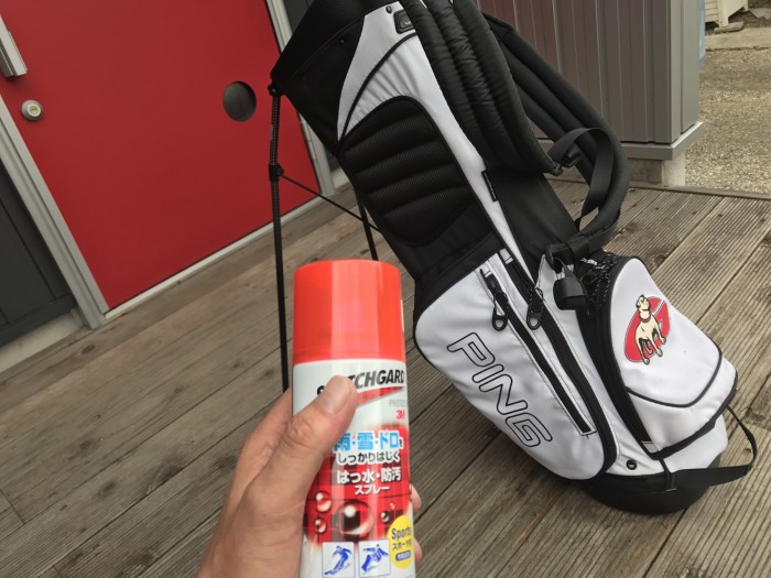 さ、今朝は先日水で丸洗いしたキャディバックがしっかりと乾いたので